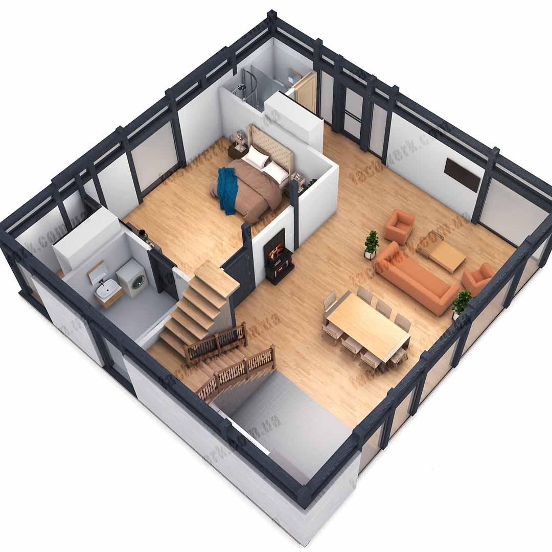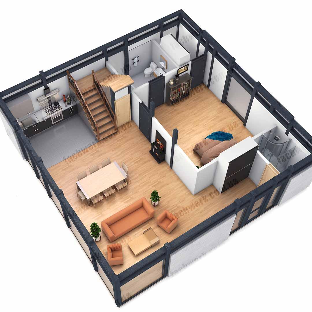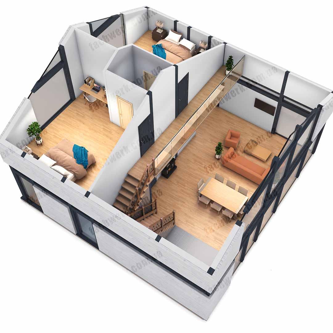 - Компактний двоповерховий будинок у класичному стилі з просторими кімнатами, "подвійним світлом" та високими стелями у вітальні, з ергономічним другим поверхом у 2х варіантах планування.